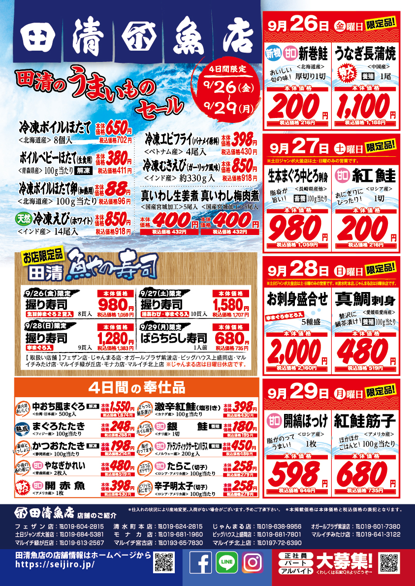 日替わり限定品の「お刺身」など食卓を彩る商品をご用意しています。